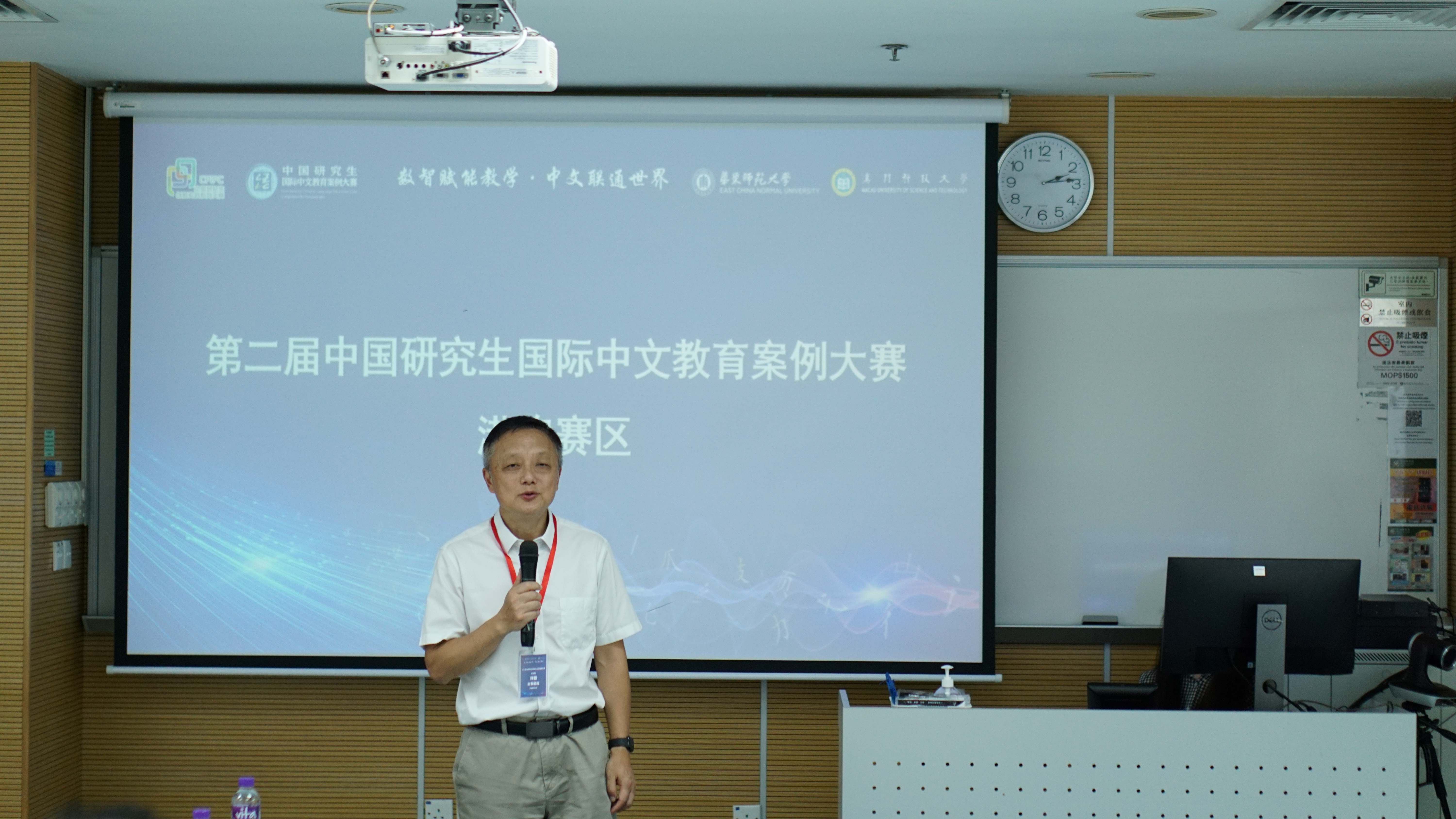 第二屆案例大賽執委會秘書長葉軍教授致辭,介紹了中國研究生國際中文教育案例大賽作為「中國研究生創新實踐系列大賽」的主題賽事之一,是一項兼具導向性、示範性和實踐性的專業競賽。他強調本賽事在推動研究生教學創新方面的重要意義,並對港澳賽區的設立給予充分肯定。