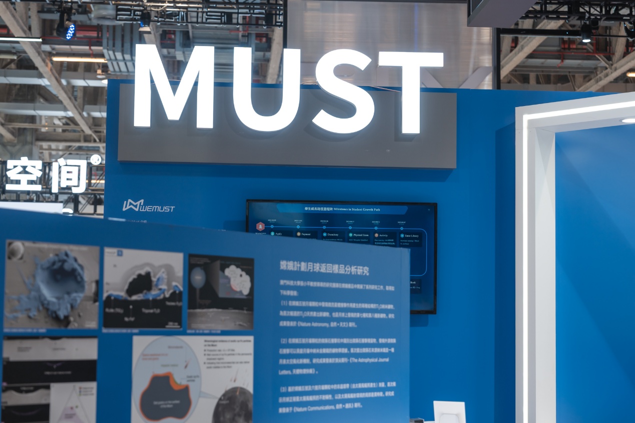 本次澳科大共展出11項具有代表性的科研成果,具體包括:「中藥機制與質量全國重點實驗室」自主研發並孵化的VitaBeam遠紅外光能墊;「月球與行星科學全國重點實驗室」圍繞嫦娥計劃月球返回樣品分析研究、月球新礦物的物性研究(嫦娥5號返樣中發現的新礦物—嫦娥石的跟進研究)及立方星載荷超熱電子譜儀三項成果;以及在創新工程領域的WeMust智慧服務一體化平台、澳科智算MAISC、澳科大IPv6 DNS基礎設施研究與應用、澳本堂AI中醫藥機器人、OLED健康光源與微顯示技術、用於柔性腦機介面乾電極的低溫燒結納米導電銀漿、自動俯仰虹膜人臉識別終端設備等七項技術成果,全面展現大學在產學研融合與跨學科平台建設方面的紮實進展。