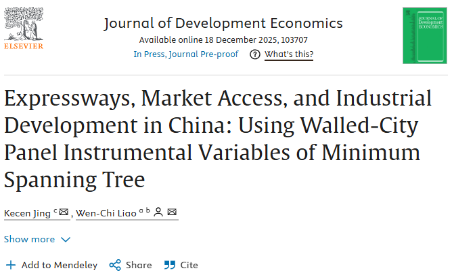 The co-author of this paper is Associate Professor Wen-Chi Liao from the National University of Singapore. The main contribution of the research lies in constructing a panel instrumental variables method that combines dynamic exogeneity with nationwide coverage. This approach breaks through the limitations of previous studies in terms of spatiotemporal scope and identification strategies, providing a solid micro-theoretical foundation and a scalable empirical analysis framework for understanding the causal mechanisms between transportation infrastructure and regional development. It offers significant policy implications for infrastructure policies and coordinated regional development in developing countries.