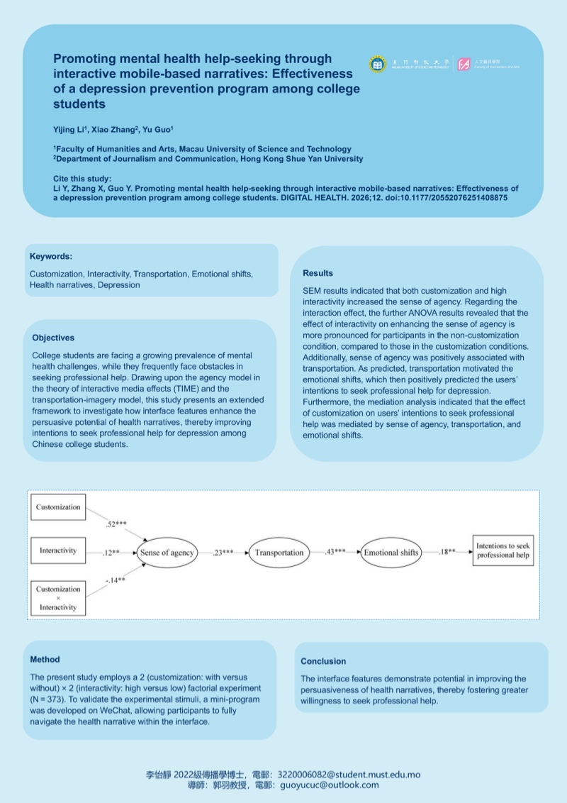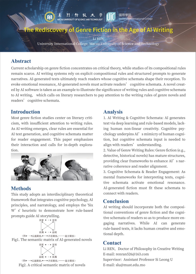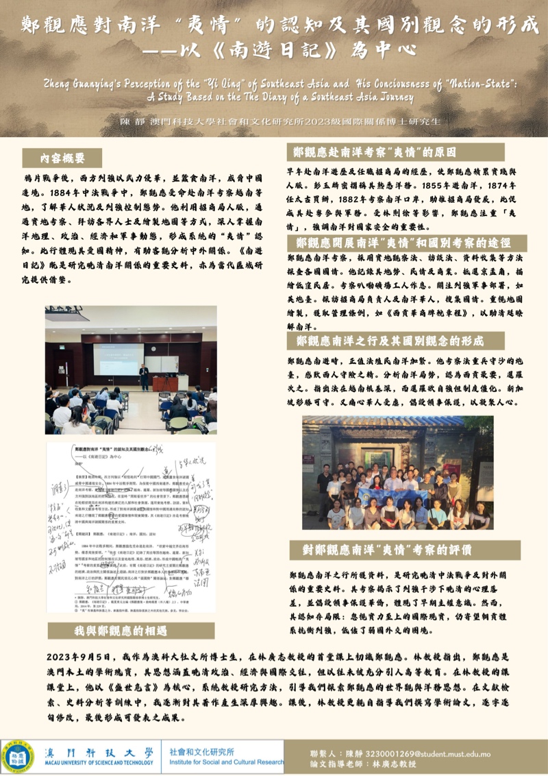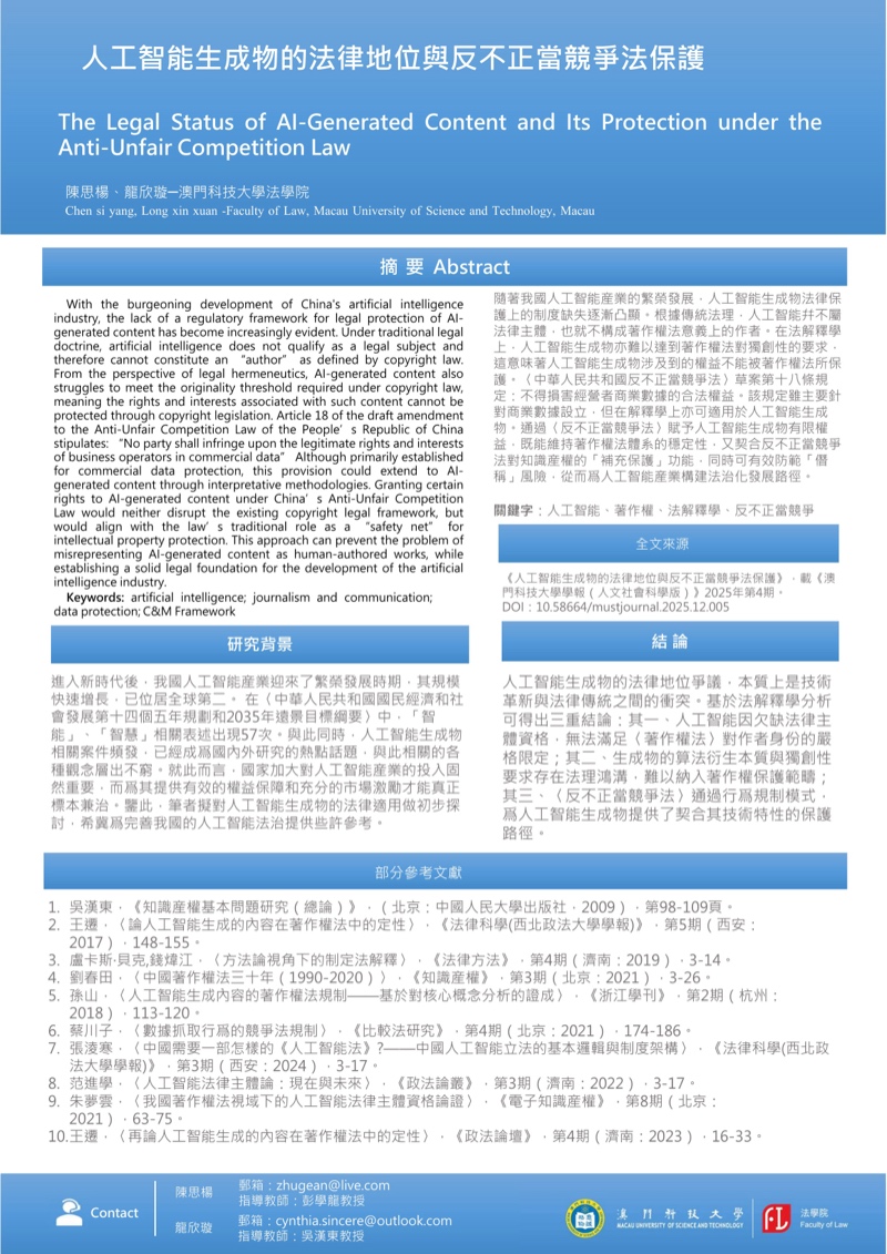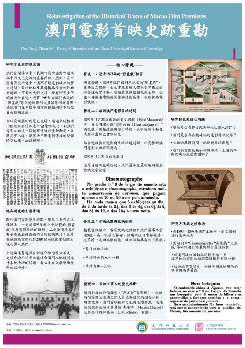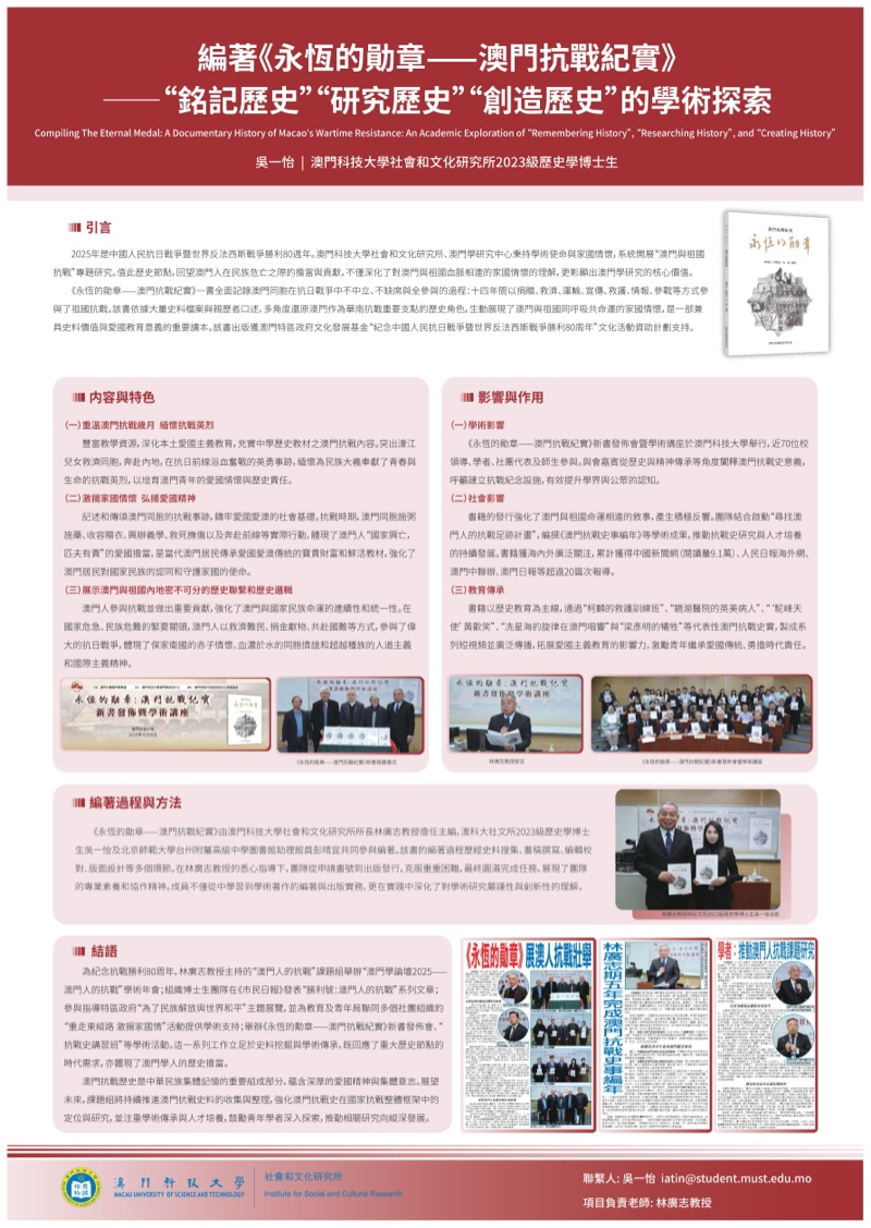 研究生優秀成果展匯聚澳科大不同學院及研究所研究生的優秀學術課題與成果,以海報、書籍等多元形式線上展示,讓各界人士深入了解澳科大不同領域的研究課題及成果,促進跨學科交流。