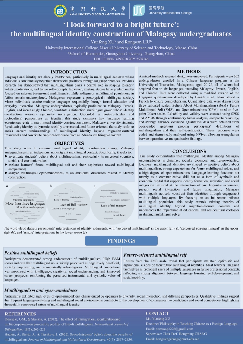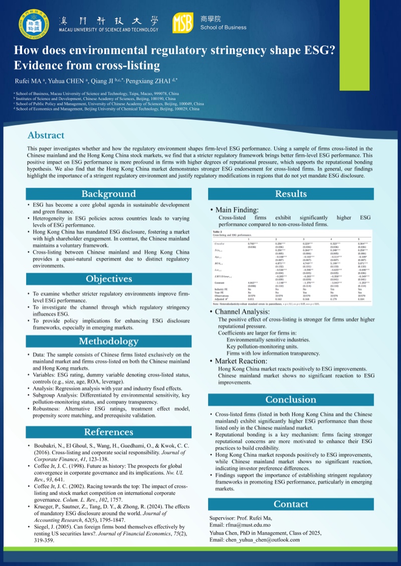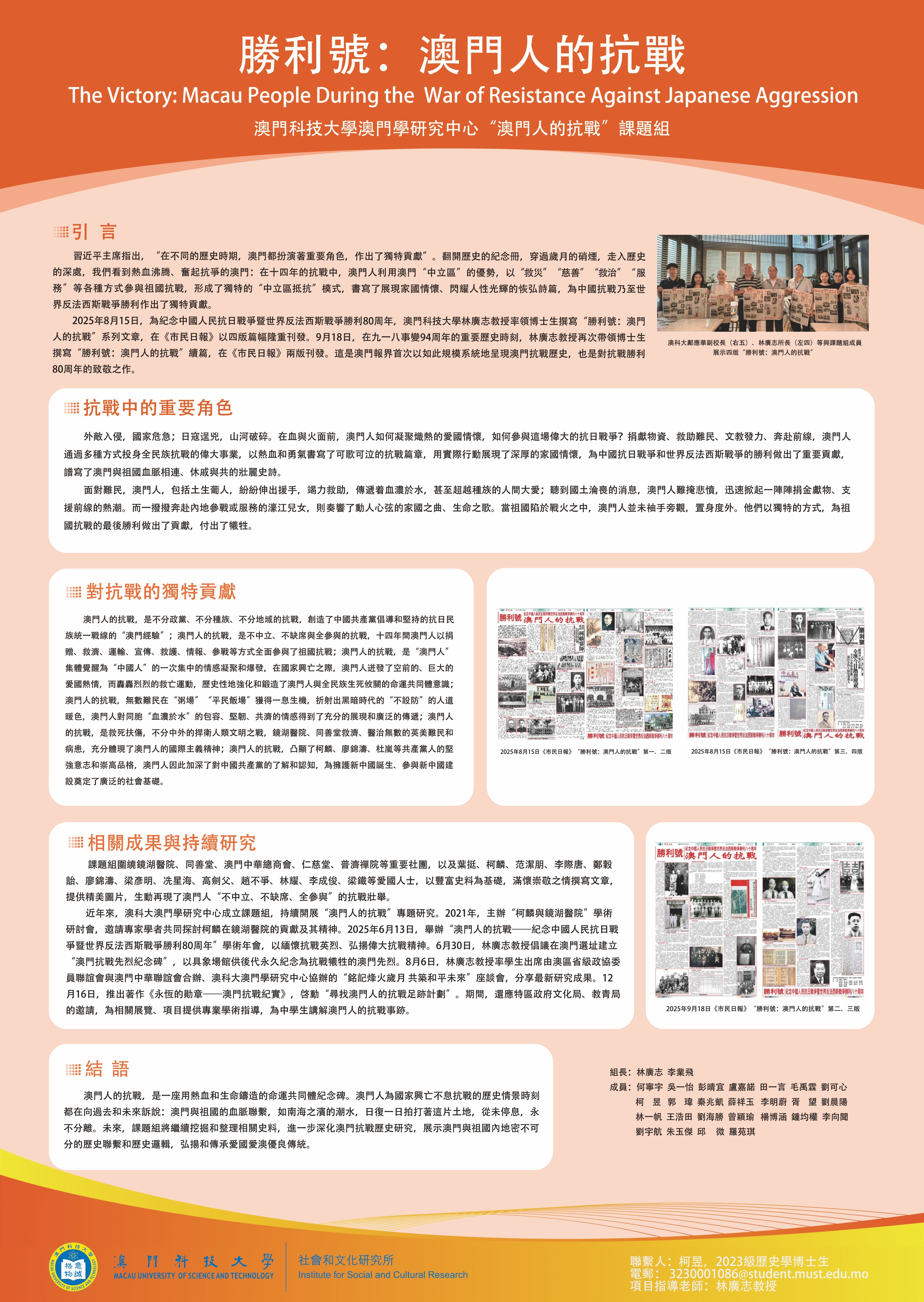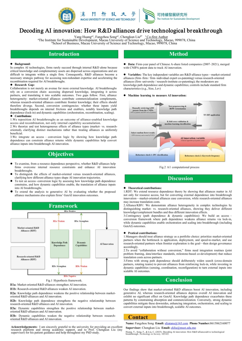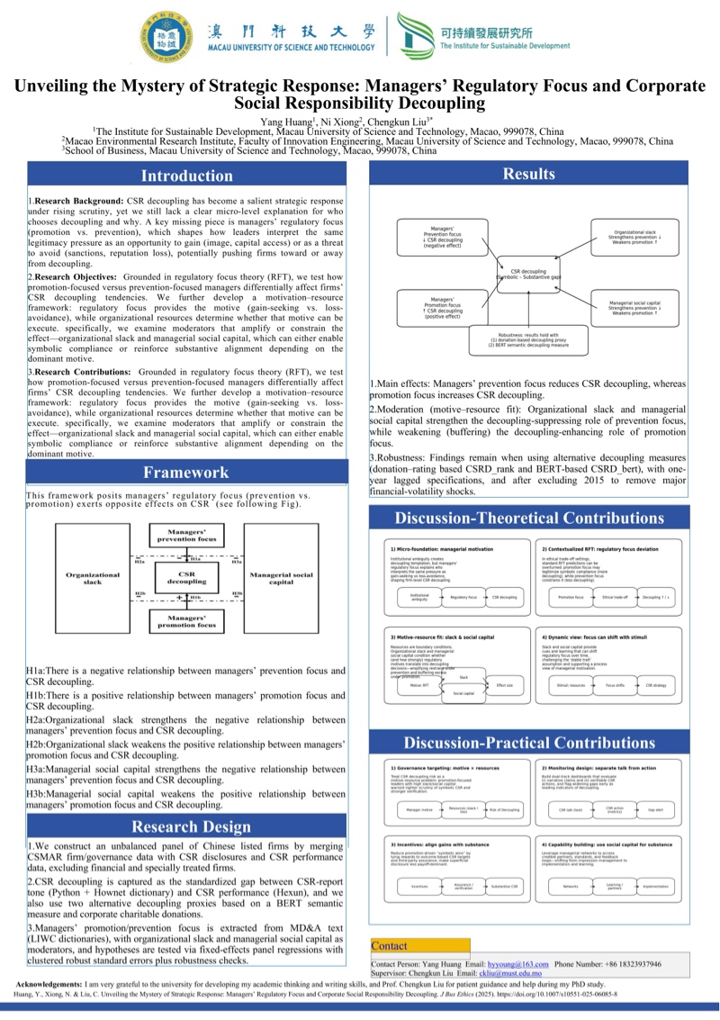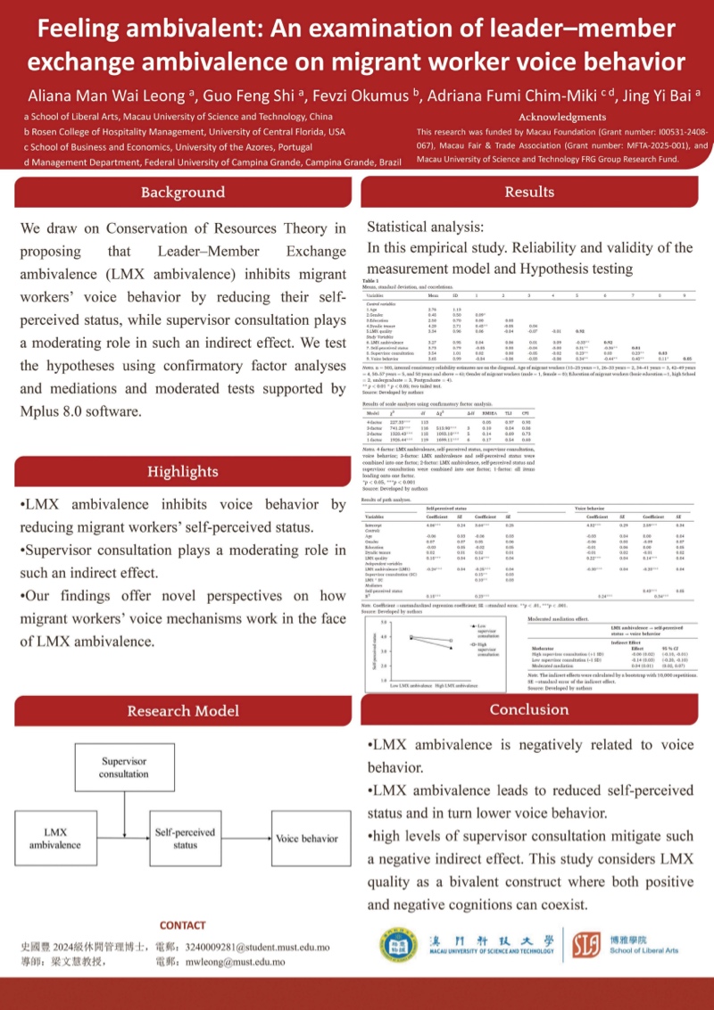 研究生優秀成果展匯聚澳科大不同學院及研究所研究生的優秀學術課題與成果,以海報、書籍等多元形式線上展示,讓各界人士深入了解澳科大不同領域的研究課題及成果,促進跨學科交流。